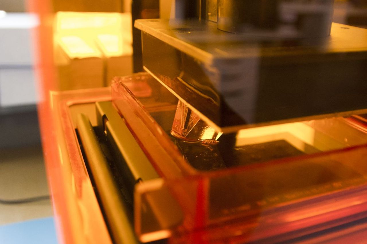 Form 2 стереолитографический 3д принтер, печатает детали путем отверждения жидкой фотополимерной смолы высокоточным лазером.